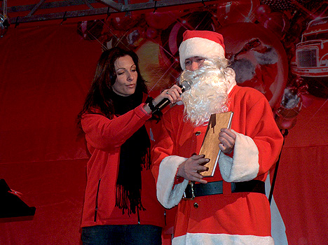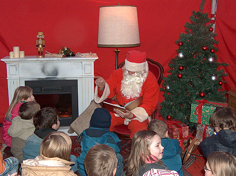Santa Claus stellt sein neues goldenes Weihnachtsbuch vor