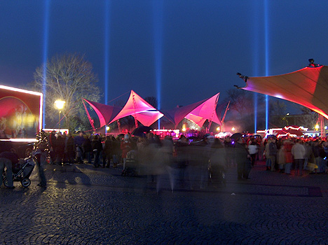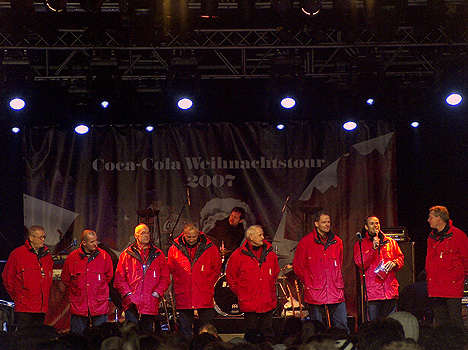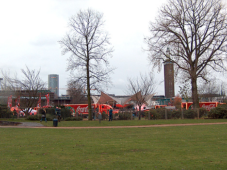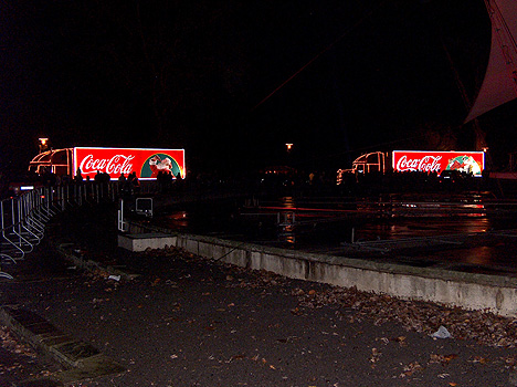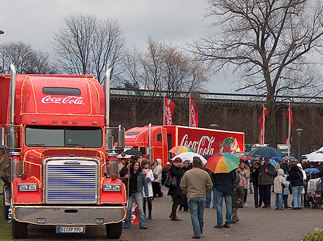 6 Coca-Cola Trucks am Tanzbrunnen in Köln
