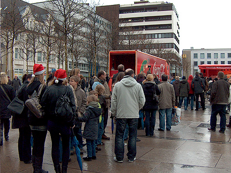 Großeinkauf am Weihnachtsshop von Coca-Cola